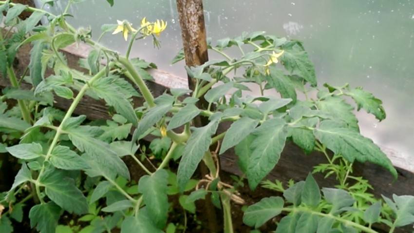 В тепличных условиях формируют кусты томатов с 2 стеблями. После достижениями ими высоты в 1,45 м растения прищипывают, чтобы остановить рост. Обязательными элементами ухода за кустиками тут остаются регулярный полив томатов в теплице, подкормка, подвязка к шпалере. Полив и в тепличных условиях, и на открытом грунте делают строго под корень. Если вода попадет на листья, на них могут остаться ожоги.