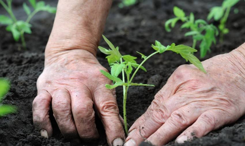 Семена в идеале нужно высадить в специальную землю для томатов на глубину пять сантиметров – в каждую ямочку положить по несколько семян и засыпать землей.