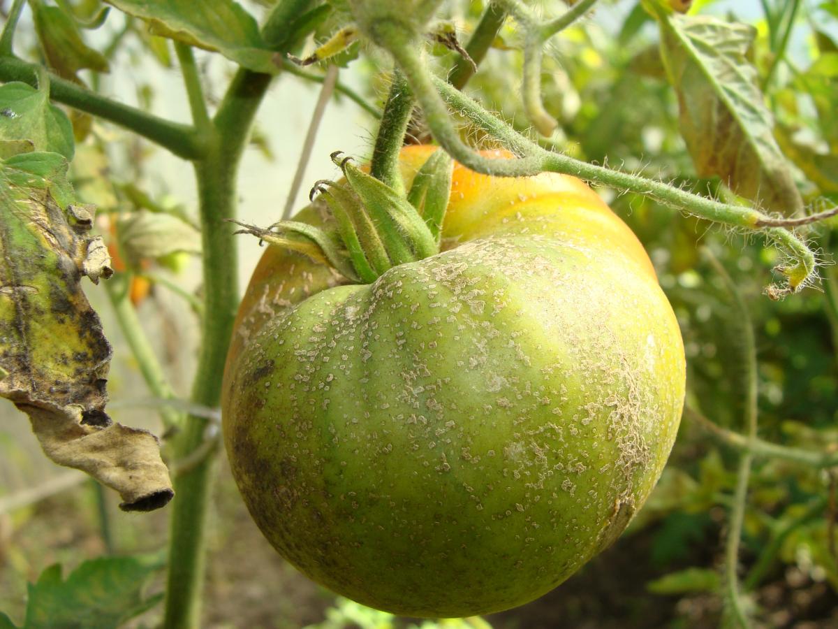 Большой вред наносит помидору грибковое заболевание с быстрым развитием — фитофтора. Оно поражает всю верхнюю часть куста — листья, стебель и плоды. Не меньшую опасность представляет и корневая гниль, которая появляется при чрезмерном поливе. При этом томат сохнет и погибает в считанные дни.