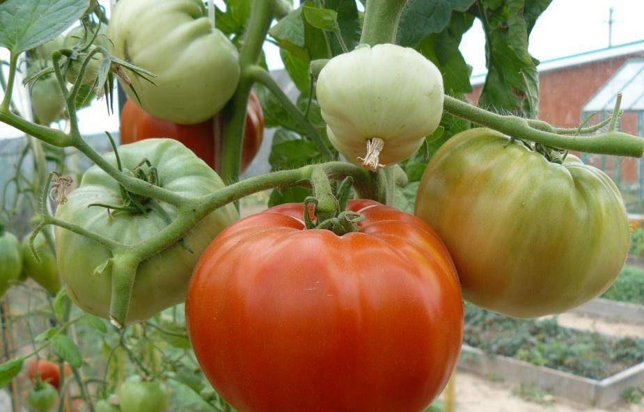 Первые помидоры краснеют в конце июня, но основная волна плодоношения приходится на июль и начало августа. Крупные плоды прекрасно поспевают на кусте, но при желании их можно срывать и бурыми. Дозревать овощи будут в темном месте около недели.