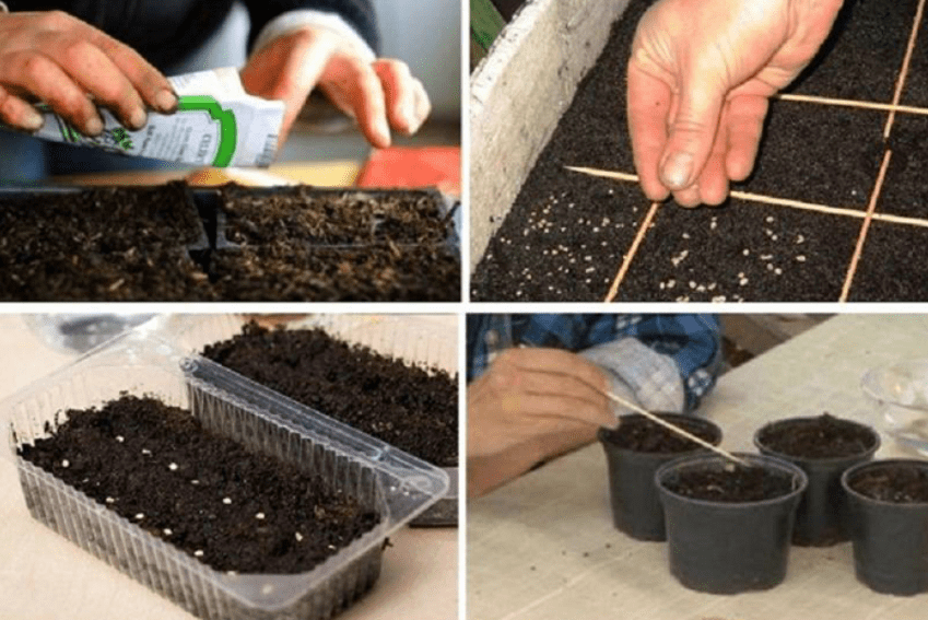 - Во влажный грунт семечки погружают на глубину 1,5 см. Можно применить как отдельные горшочки, так и общий контейнер;