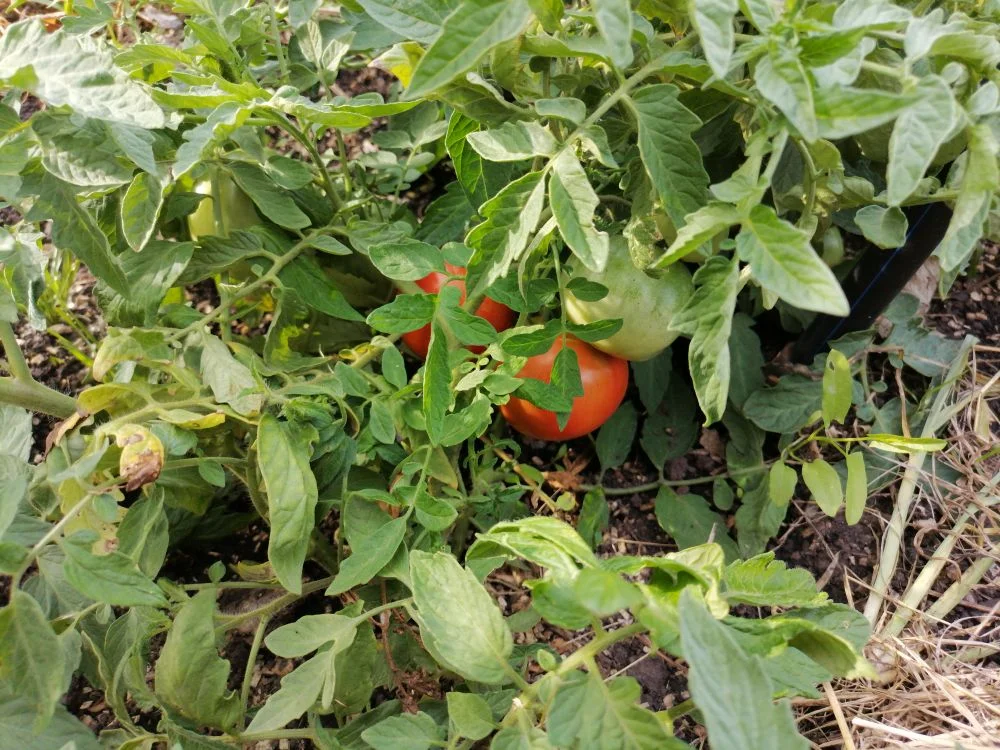 Чтобы найти красные помидоры, пришлось разгребать листву, фото автора