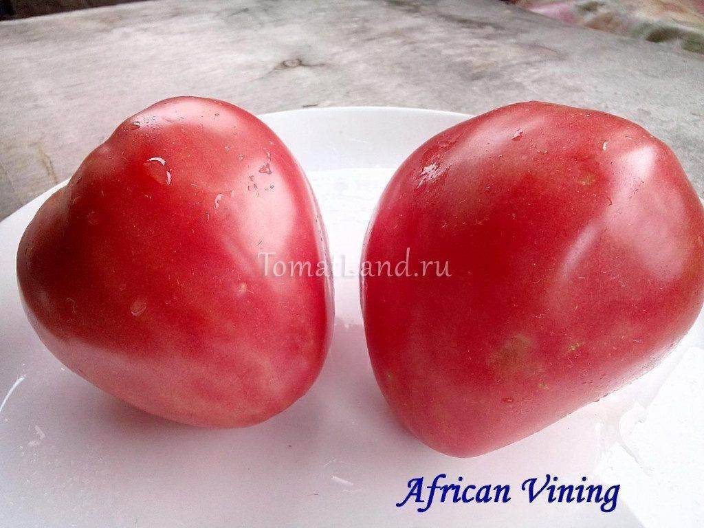 Оригинальное название этого сорта – African Vining. Среднеспелый, высокорослый, индетерминантный сорт томата из Канады. Рекомендован для выращивания в теплицах. Куст тонкий (как и у большинства сердцевидных томатов), слабооблиственный, высотой до 2-х метров. Лист обычного типа, тонкий. Требуется п…