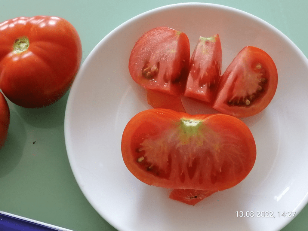 Вкус зрелого томата кисло-сладкий, классический, с выраженным характерным ароматом.