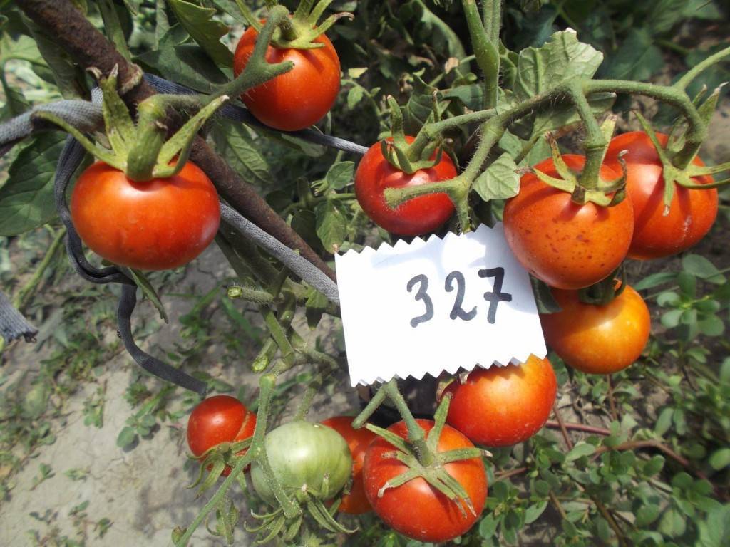Завязи формируются на простых или сдвоенных кистях по 4-5 штук на каждой веточке. Плоды, выровненные по размеру, созревают одновременно. Масса 1 помидорчика редко превышает 100 г.