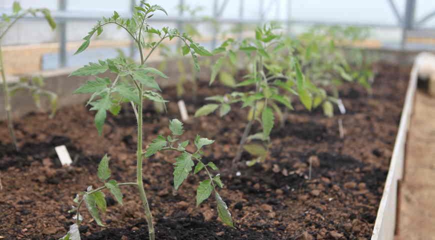 На каждый кв. м грядки размещают 4 куста. Обязательно требуется опора, к которой подвязывается растение на протяжении всего периода вегетации. Томаты любят питательный и рыхлый грунт. Еще осенью, готовя грядку, вносят не менее 20 кг перегноя на каждый метр, а затем перекапывают. Весной можно добавить 80 г суперфосфата и 2 г хлористого калия. Рассыпав по поверхности, удобрения заделывают в почву граблями.