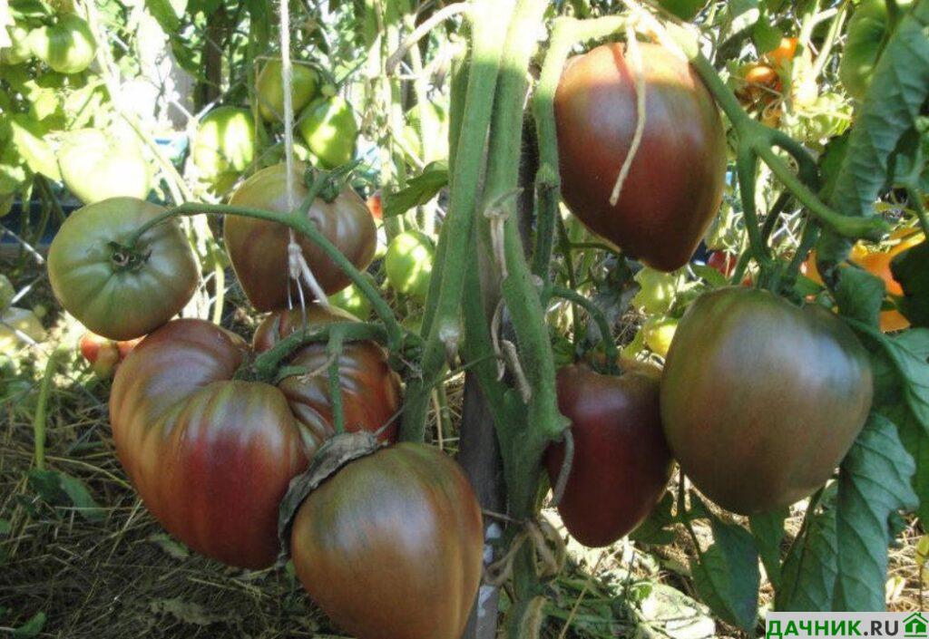 Индетерминантный средних сроков сбора урожая томат. Куст мощный, развивается очень быстро, может достигать в высоту 1.6–1.9 м. На каждой кисти созревает по 5–8 помидорок, весящих по 220–260 граммов. При полном созревании кожица коричневая с шоколадным оттенком и фиолетовые плечики, которые в зависимости от количества солнца могут покрыть и половину всей поверхности.