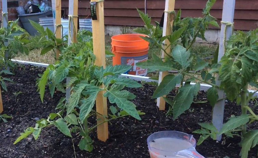 Другие садоводы в отзывах пишут, что они с той же целью обрабатывают кусты томатов чесночным настоем. Для приготовления настоя они замачивают 250 граммов молодого давленого чеснока в ведре воды и выдерживают его там двое суток.
