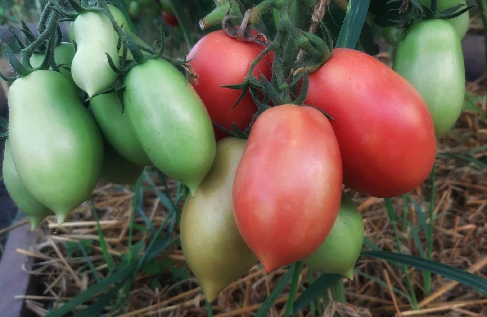 Плоды – вытянутые сливки, длина – 11-12 см, гладкие и ровные, весом 80-120 граммов. Окраска кожицы – розовая. В период отдачи урожая плоды гроздьями висят на кустах. Вкус – отличный. Основное предназначение помидоров – консервация, засолка, вяление, также подходят для салатов.