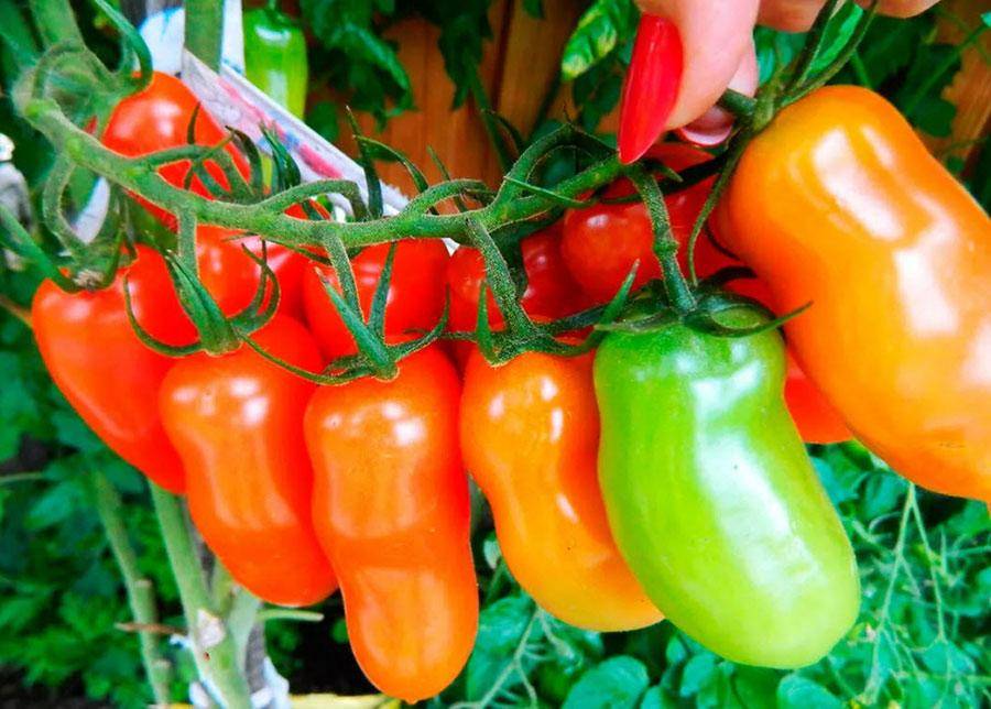 В Германии для этой группы томатов даже создали специальное название – Flaschentomaten, что означает бутылочные томаты. Действительно, многие представители этой группы своей формой очень напоминают бутылку, поскольку, кроме вытянутой формы, у плодов примерно посередине имеется небольшое утоньшение (талия).