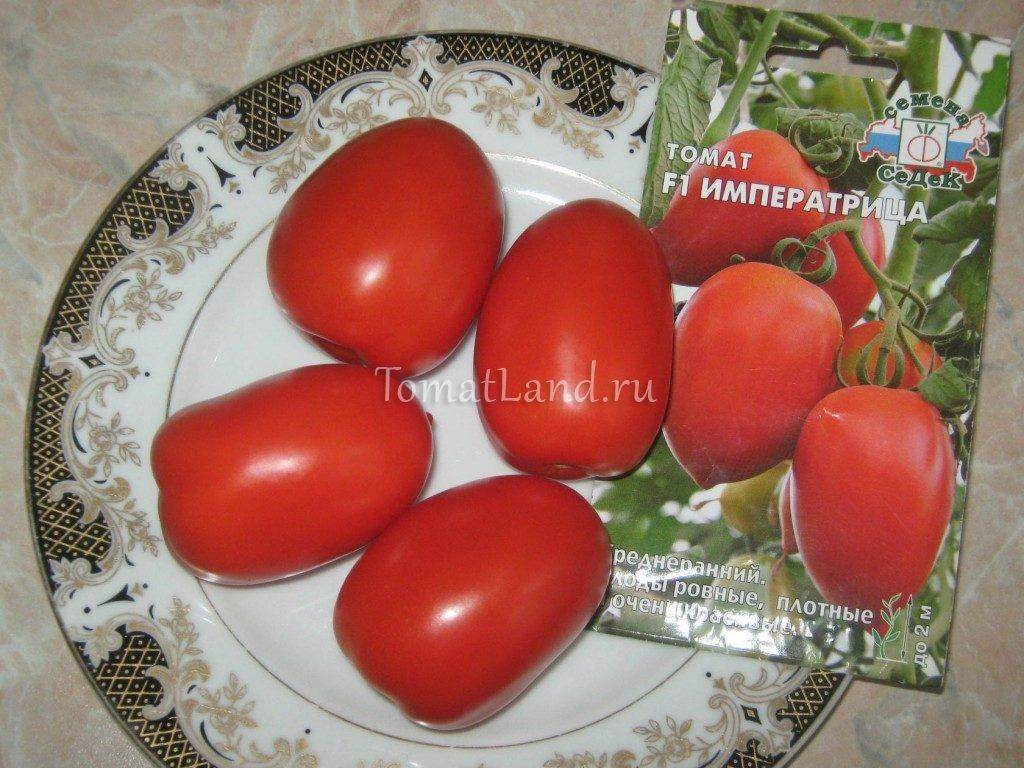 Описание и характеристика томата Императрица F1, отзывы, фото Среднеранний (95-100 дней от всходов до начала созревания), индетерминантный, высокорослый, гибрид томата. Рекомендован к выращиванию в теплице, в южных регионах — в открытом грунте. Куст хорошо облиственный, высотой в теплице до 2-х мет…