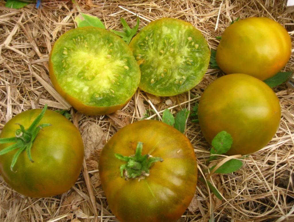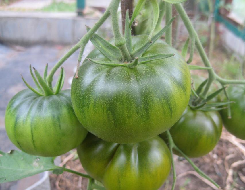 - незрелый помидор темно-зеленый, созревший – светлый с размытыми желтыми полосами;