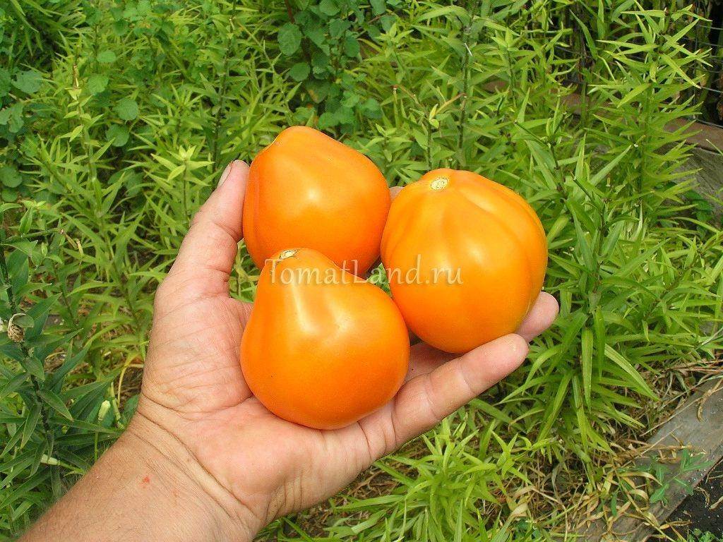 Индетерминантный сорт томата. Высота куста 2 м и выше среднеспелый, урожайный сорт. Плоды ярко-оранжевые, сердцевидные с острым носиком, очень мясистые, мелкосемянные, превосходного сладкого вкуса, весом 200-500 г. Супер сорт! Плодоносит до поздней осени. Один из лучших оранжевых сортов. Рекомендую.