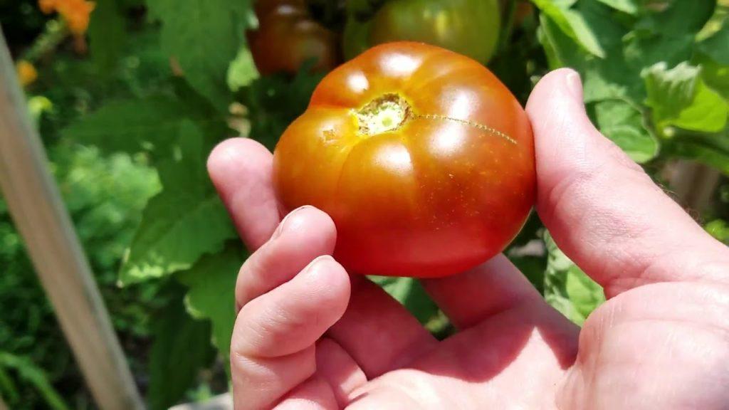 Цвет плодов при созревании из красного становится бордовым. Форма сильно приплюснутая, округлая, ребристость средняя. Мякоть сочная, ароматная, внутри нее расположены 10 семенных камер. Средний вес томатов составляет 270 г. Может выращиваться в любых регионах, но в Сибири и на Дальнем Востоке ему может не хватить солнечного света или потребуется отапливаемая теплица.
