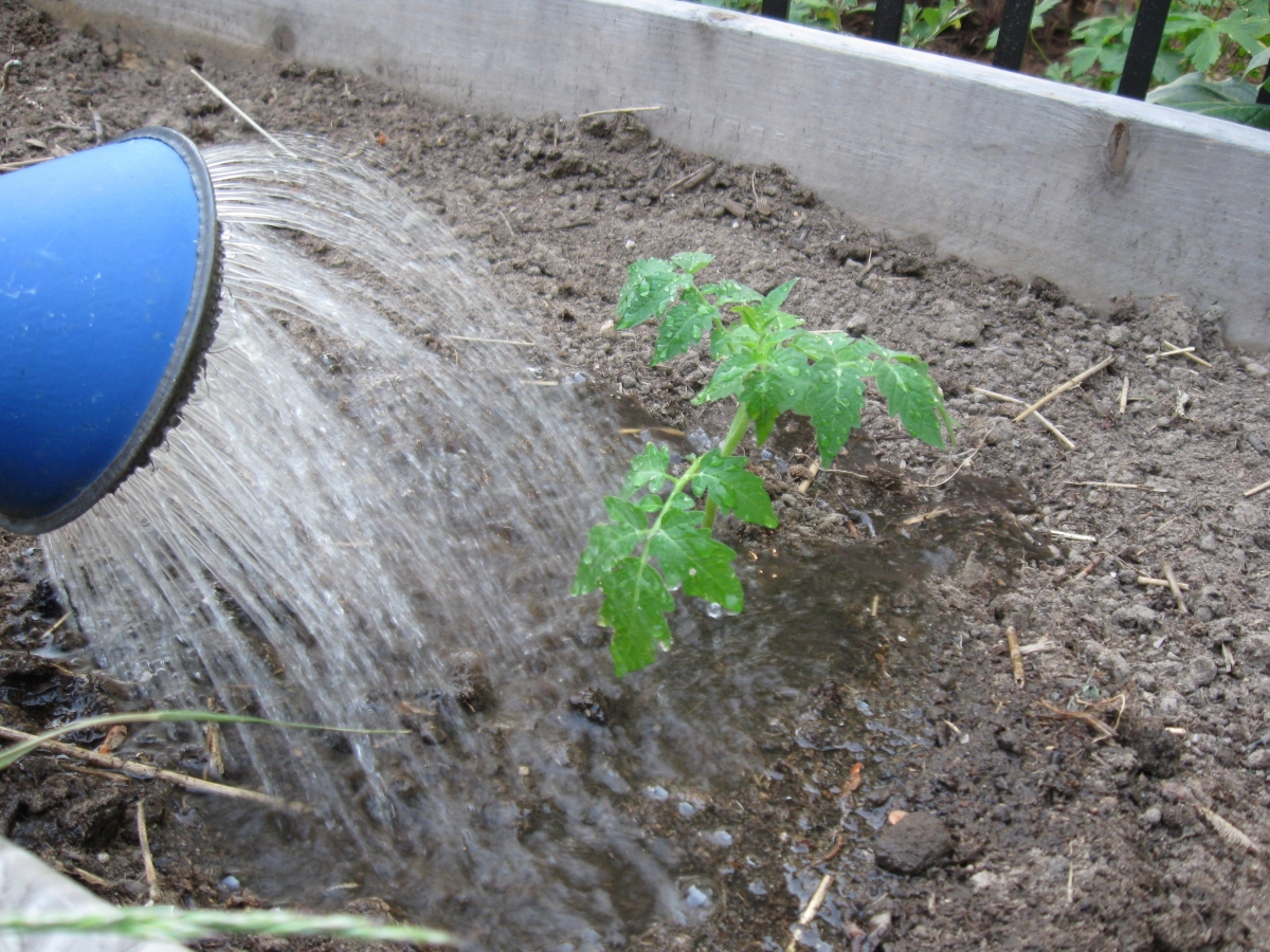 В первые несколько недель после высадки растений нужно обеспечить достаточный полив. Затем томатам будет хватать дождевой воды. При сильной засухе полив можно будет возобновить.