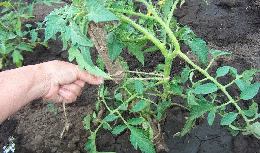 Также необходимо подвязать растение после достижения их в высоту около 30-40 см. Из описания сорта томата «Кенигсберга» следует, что оно достаточно высокое, поэтому опора должна быть крепкой.