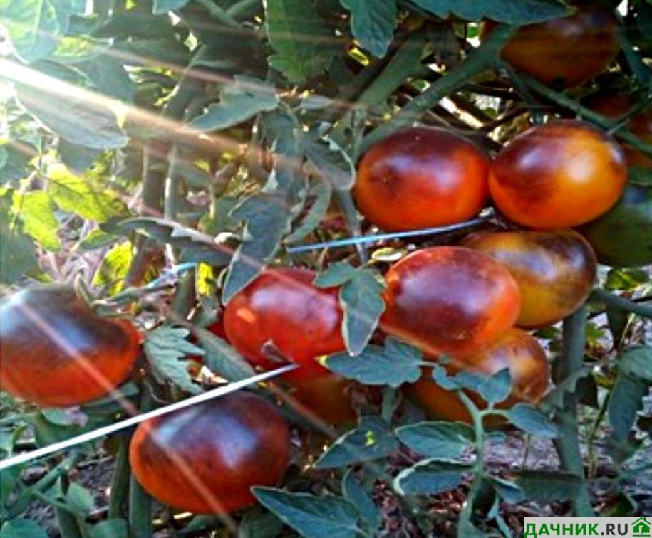 Этот редкий томат был выведен в США. Куст индетерминантный, вырастает до 2-2,4 м в теплице, в открытом грунте – до полутора метров. Однако в средней полосе и севернее его рекомендуют высаживать только в теплицах. Растение среднеоблиственное. Первые завязи появляются после 9-12 листа. На одной кисти развивается по 3-4 помидора.
