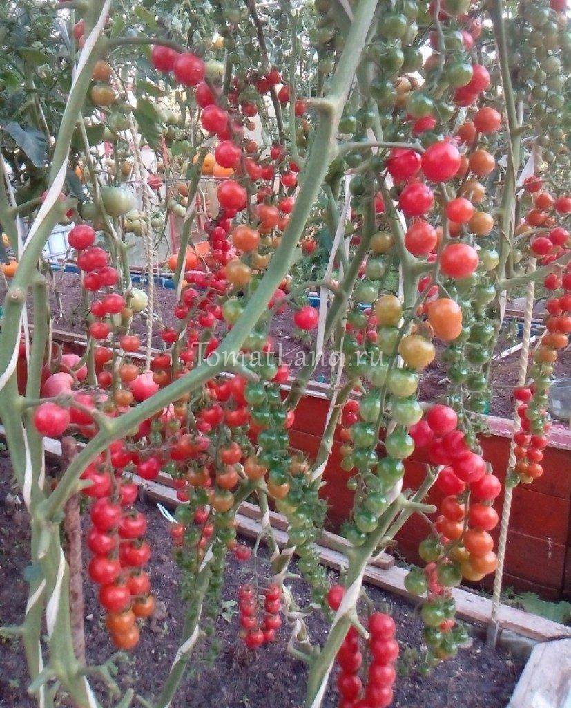 Соцветие обычное (простое), в первый раз получается после 6-7 листа, потом — через 1 или 2 листа. Из одного соцветия вырастает до 30 мелких плодов в форме грозди. Плодоножки с сочленением крепкие, плоды не опадают. Корневище мощное, обычное для не штамбовых кустов, разрастается на десятки сантиметров в разные стороны горизонтально.
