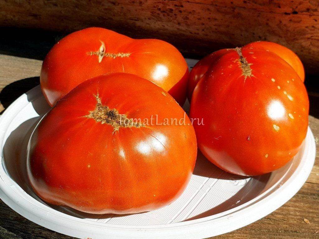 Среди среднеспелых крупных, самых урожайных помидоров следует отметить этот необыкновенный сорт. Плоды более полу килограмма, куст хорошо растет как на грядках, так и в теплице, но рассаду лучше сажать под пленку. С одного куста собирают урожай до 6 кг. Относится к группе томатов, из которых можно приготовить вкусный салат. Для консервации в целом виде, мало подходит, так как плод достаточно крупный. Используют в салатах, для приготовления кетчупов,так как обладают прекрасными вкусовыми качествами, сладковатым вкусом с небольшой кислинкой. Созревает в течение 90 дней. Отличается устойчивостью к болезням из-за того, что период созревания приходится на оптимальные для томатов теплые летние месяцы. Относится к детерминантным томатам, не нуждается в прищипывании верхушки растения, не прихотлив. Из-за большого веса плодов, лучше подвязать. На рынке ценится выше обычных сортов красных помидоров. Его аналогом является «Малиновый гигант F1», как и все гибриды, не дает семена для будущих всходов