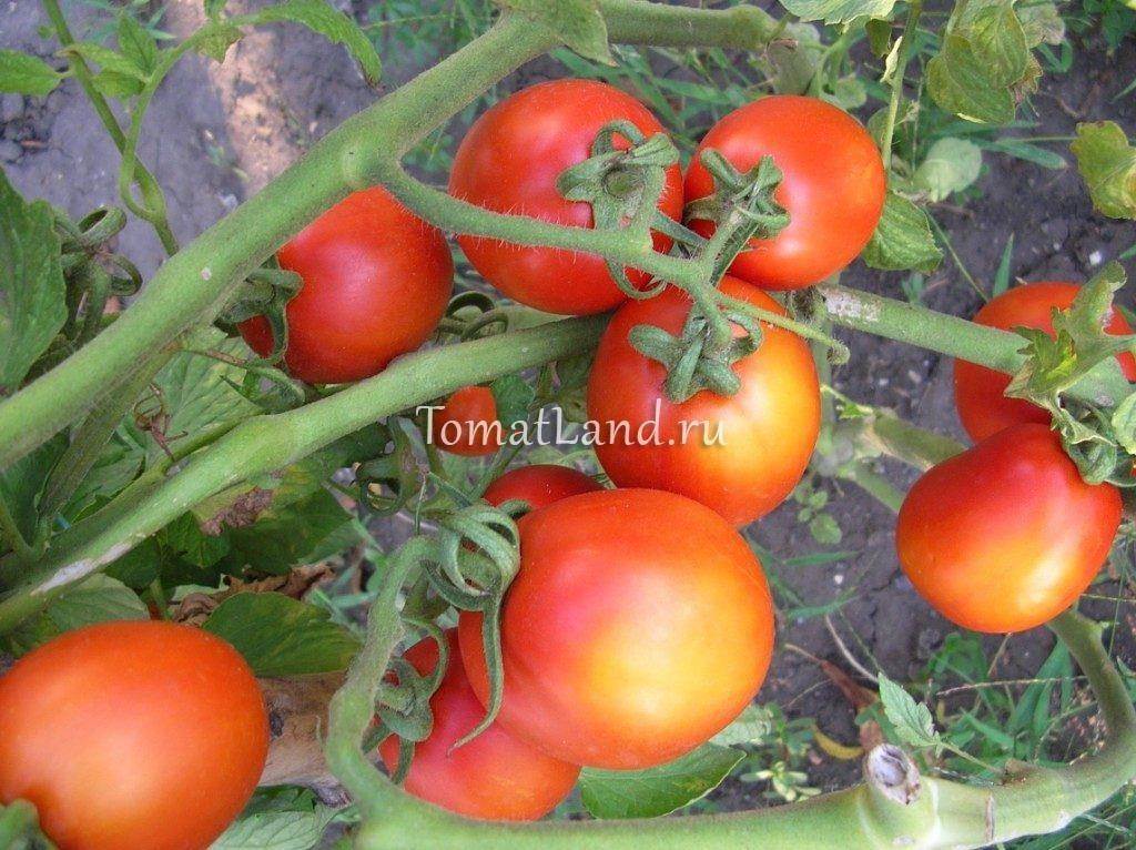Томаты созревают целыми гроздьями, что очень удобно при сборе урожая. На одной плодовой кисти формируется до 7 томатов.