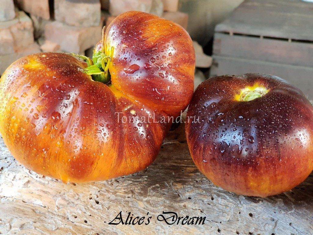 Описание и характеристика томата Мечта Алисы, отзывы, фото Оригинальное название сорта — Alise&8217; s Dream. Сорт селекции Збигнева Паулючука (Польша). Получен скрещиванием сортов Blue Gold и Amethyst Jewel. Среднеспелый, высокорослый, урожайный сорт томата с очень красивыми плодами-биколорами. В …