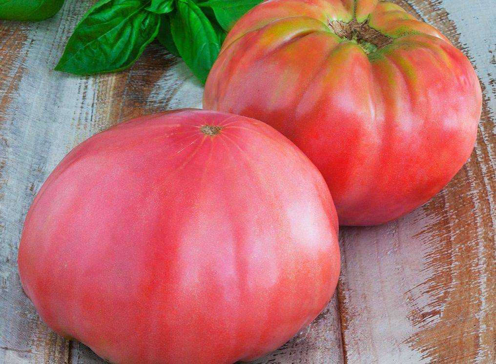 Помидоры плоско-округлой формы, красивые, плотные, в спелом виде темно-розового цвета, весом 250-300 грамм. Очень вкусные, сочные, сладкие.