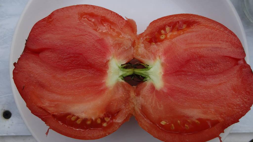 По плотности томат средний. На разрезе видно, что семенных гнёзд шесть, а самих семян не много. Семенные камеры не заполнены соком, а семена находятся прямо в мякоти плодов.