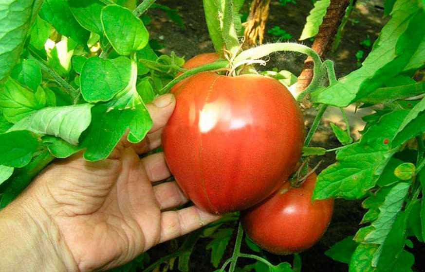 Раннеспелый сорт. Снимать первые спелые овощи можно на 90-100 день после всходов. Растения детерминантного типа, высота не превышает 80 см. Облиственны кусты средне, что позволяет растению отдавать все силы на формирование плодов. Томаты имеют сердцевидную форму, с ребристостью. Вес одного овоща достигает 700-800 г. Помидор в полной спелости приобретает ярко-красный цвет. Мякоть сочная и мясистая, богата витаминами А, С, Е. На вкус плоды сладковатые.
