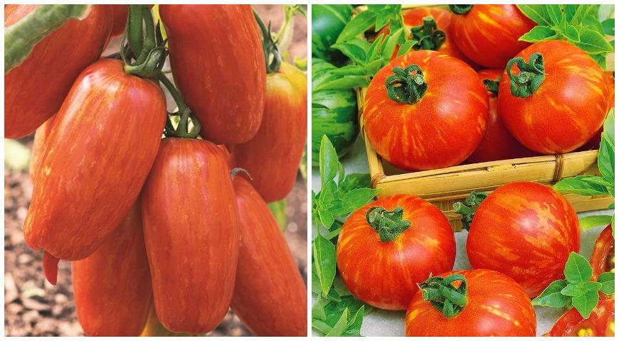 Томат Искры пламени (слева) и Тигрелла (справа)