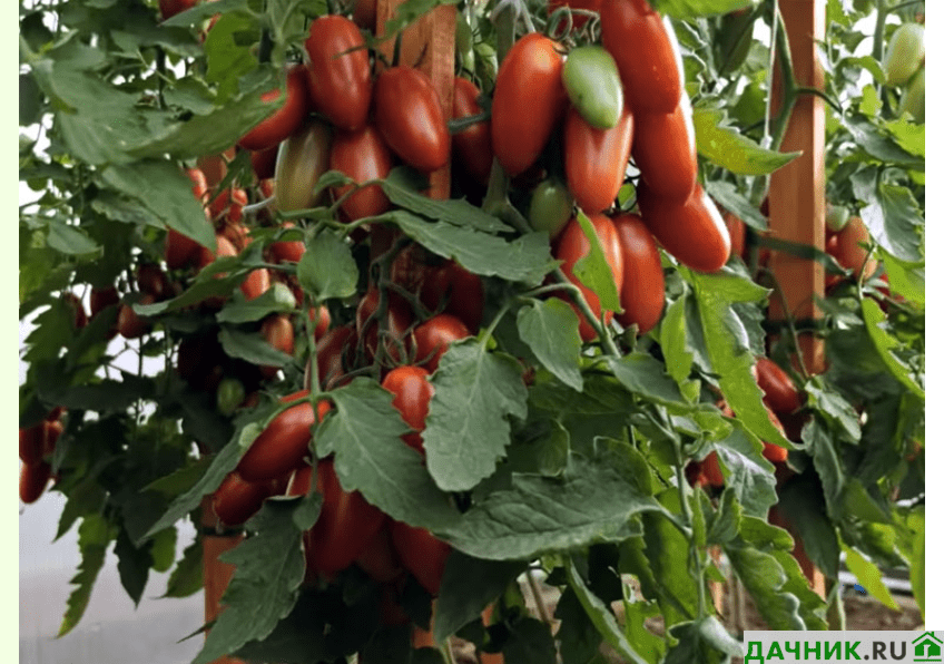 Стебель толстый, верхушку необходимо прищипнуть, чтобы куст разрастался вширь. Отличается формированием большого количества кистей, усыпанных помидорами