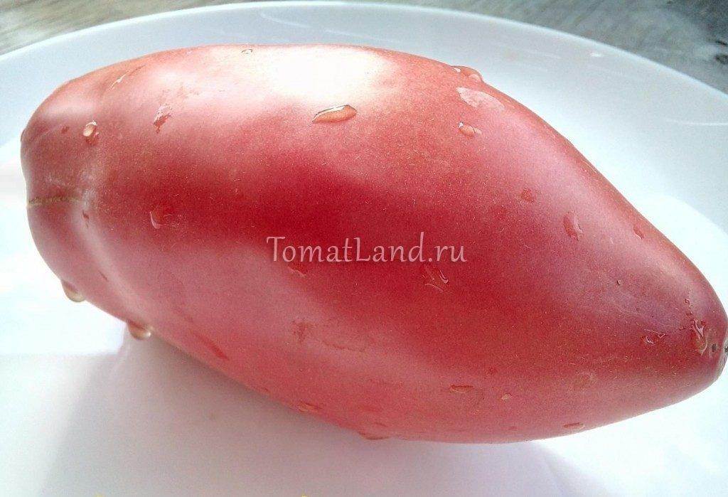 Плоды крупные, грушевидные, ребристые, в стадии зрелости красного цвета, весом 150-250 грамм, сочные, мясистые, сахаристые. очень вкусные. Эти помидоры универсального использования — хорошо подходят как для салатов, так и для консервирования на зиму. Красиво смотрятся в нарезке.