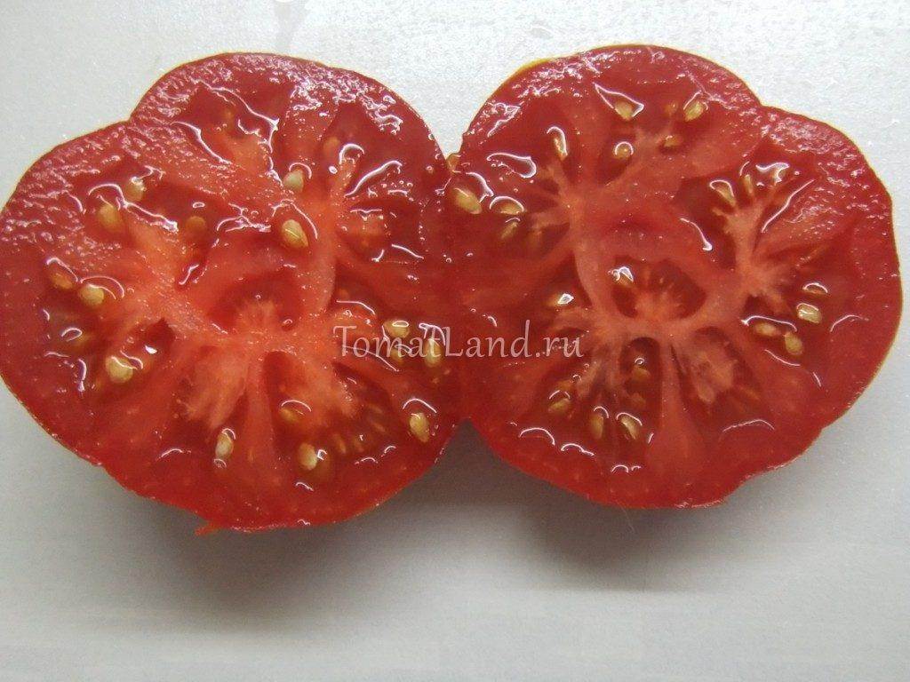 - Медвежья лапа – любимец огородников. Высота растения – до 1,7 м, куст сильно ветвится, требует регулярного пасынкования, на 1 кв.м не стоит высаживать больше 3 растений, иначе снизится урожайность. Относится к сортам раннего созревания – в средней полосе при посеве на рассаду в марте первые плоды можно получить уже в июне. Помидоры невероятно вкусные, сладкие, сахарные на изломе, семена мелкие, их мало, вес 700-900 г. Цвет розово-красный.