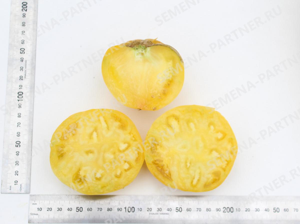Мякоть мясистая плотная, мало семенная, кожица средней плотности. Те, кто выращивал данный сорт, отмечают высокие вкусовые качества томатов.
