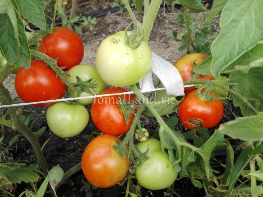 Во время плодоношения куст подвязывают под кистью, чтобы под тяжестью созревающих помидоров побег не сломался.