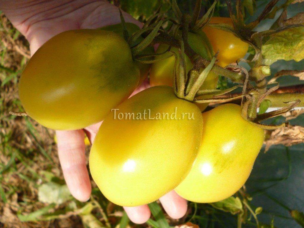 Плоды — удлиненные сливки, в стадии зрелости нежно-кремового цвета, весом 60-80 грамм. Вкус хороший, насыщенный. Эти помидоры хорошо подходят для употребления в свежем виде и консервации (не трескаются).