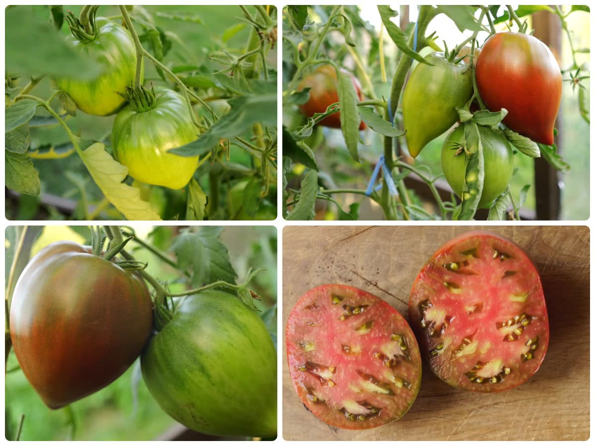 Это действительно очень высокорослые растения, для которых отметка в два метра – не предел. Во всем облике этого сорта чувствуется изящество и элегантность: стройный стебель, аккуратная листва, красивая сердцевидная форма плодов, их насыщенный шоколадно-коричневый цвет. Для меня просто удовольствие – любоваться этими очаровательными помидорами-сердечками на грядке.