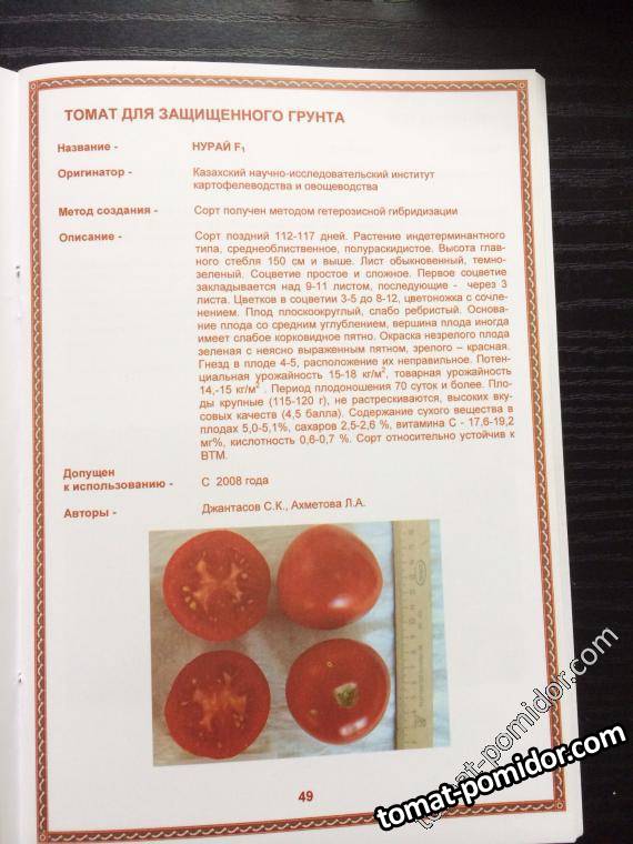 Информация о допуске Томат Вермилион из Реестра Госсорткомиссии РФ