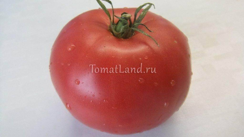 Плоды среднего размера, весом от 65 до 190 г. В закрытом грунте томаты получаются более крупными. Форма плоско-округлая, с небольшой ребристостью около плодоножки. В процессе созревания помидоры меняют цвет со светло-зеленого на однотонный темно-розовый.