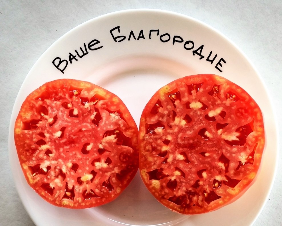 Помидоры Ваше благородие считаются салатными, имеют уникальный запас витаминов, микро и макроэлементов. Поэтому они применяются как в питании, так и в косметологии.