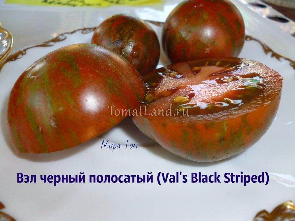 Оригинальное название сорта — Val’s Black Striped, Канада. Среднеспелый, урожайный, полудетерминантный сорт томата для теплиц и открытого грунта. Куст высотой до 1, 5 метров в теплице, В ОГ чуть ниже. Требуется подвязка к опоре и пасынкование. Рекомендуем формировать растение в 2-3 стебля. Лист у э…