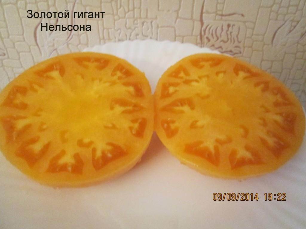 Описание томата Золотой гигант Нельсона, отзывы, фото Оригинальное название сорта — Nelson’s Golden Giant. Среднеспелый, высокорослый, крупноплодный сорт томата из Канады. В средней полосе рекомендуется выращивать его в теплице. Куст индетерминантного типа, высотой до 1, 8 метра. Требуется подвязк…