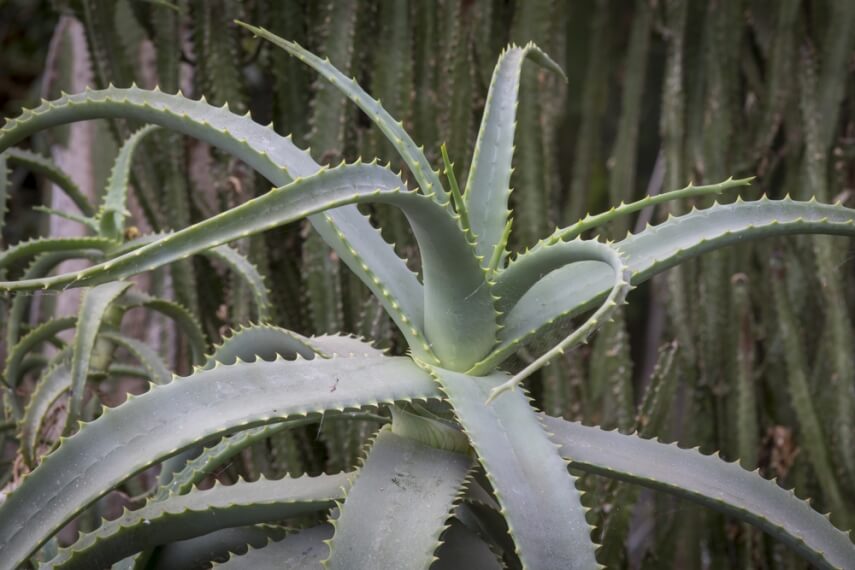 Алоэ древовидное имеет ствол и листья. Алоэ вера по строению является розеткой из листьев, отличающихся по форме. Листья жесткие, покрытые шипами для предохранения от потери влаги. Это помогает растению выживать в пустыне.