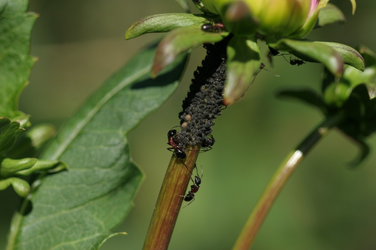 Тля питается соками растения и оставляет липкие остатки своей жизнедеятельности. На стеблях тля размножается, образуя большие черные колонии. Бороться с данным вредителем можно при помощи мыльной воды, которым обмывают растение. Также опрыскивают настоем чеснока, ольхи, лука, табака. Можно использовать инсектициды — актару, фитоверм, каратэ.