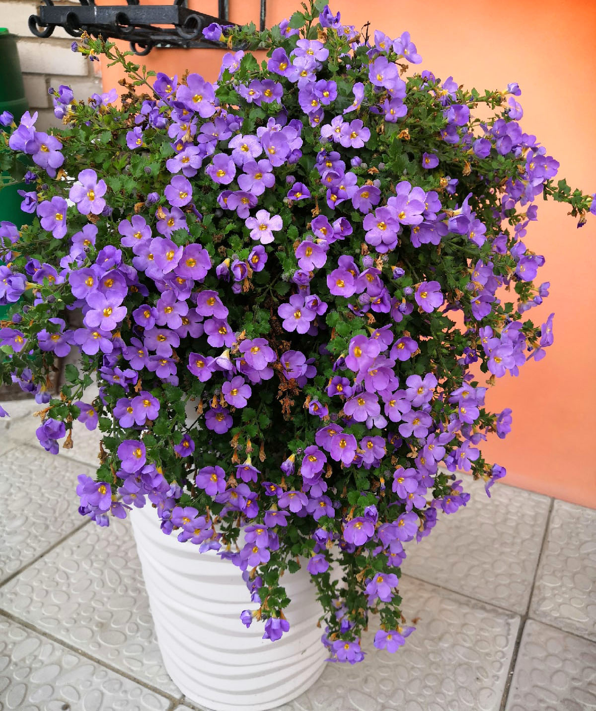 - Блутопия (Bacopa Blutopia F1). Чудесный гибрид для ампельного выращивания, цветёт мощными волнами. Требует много солнца и внесения подкормок, чтобы реализовать весь свой потенциал.