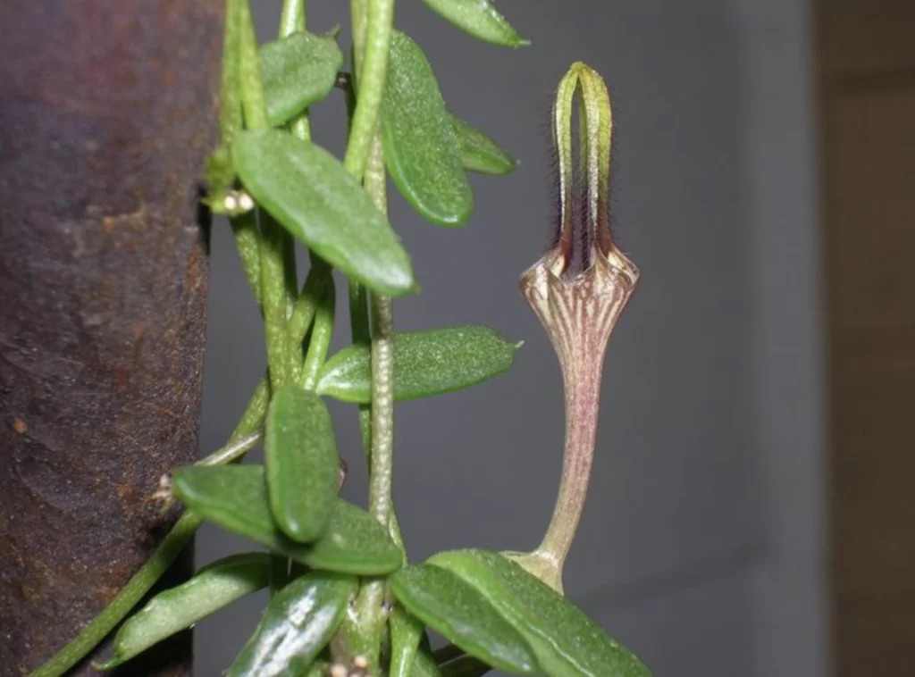 Обратите внимание на фото – у церопегии цветки пазушные, собранные в малоцветковые зонтики с трубчатым венчиком, расширенным у основания: