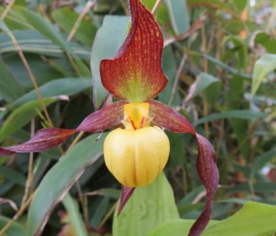 Туфелька настоящая, или обыкновенная (C calceolus) – морозостойкое растение, способное перезимовать при понижении температуры до минус 30-35 градусов. В высоту вырастает до 30-50 см, цветет в мае-июне. Цветки яркие, с вишневыми лепестками, слегка закрученные, с крупной насыщенно-желтой губой.