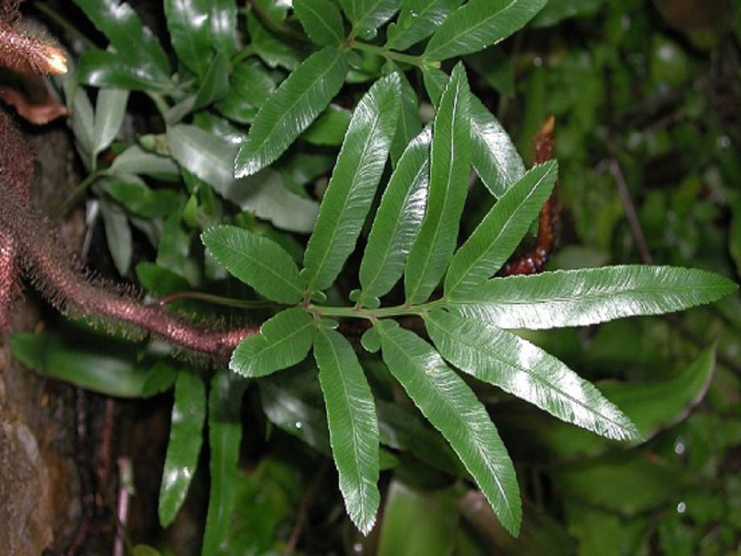 Родина вида — полуостров Малакка, Малайский архипелаг, Полинезия, Австралия. Многолетние вьющиеся растения; корневище тонкое, древеснеющее, покрытое нитевидными чешуями. Листья трижды перистые, широкотреугольные, 30—50 см длиной и 15—25 см шириной; листочки мелкодольчатые, линейные; фертильные на каждой доле с одним спорангием; стерильные округлые, зубчатые. Черешок до 30 см длиной, глянцевитый, бурый. Высокодекоративный вид, используется особенно как ампельное растение. Подходит для теплых и влажных помещений.