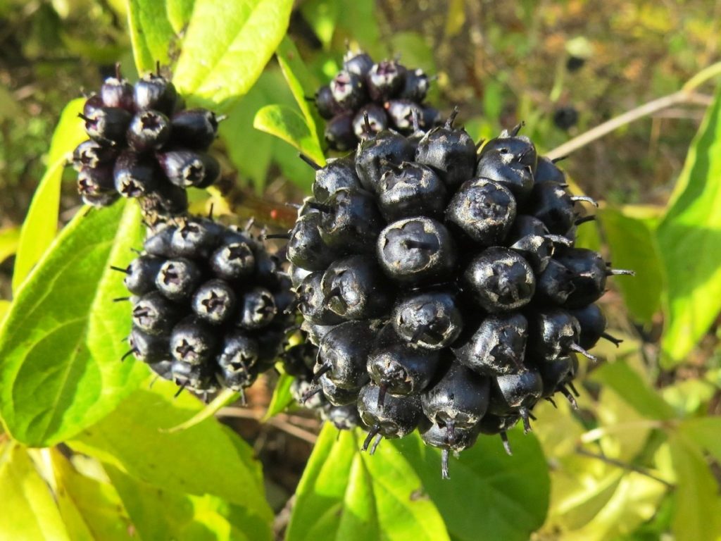 У Элеутерококка колючего есть несколько других названий. В народе его принято именовать «Сибирским женьшенем» и «Свободноягодником». Это вид вырастает в длину до 5 метров и имеет много стволов, количество которых варьируется от 20 до 50 штук. Побеги прямые, на них практически отсутствуют веточки, но много колючек. Корни растут на поверхности, очень густые и широко разросшиеся. Из этого растения сложно вырастить компактный кустик. В основном его используют для создания живой колючей изгороди. Элеутерококк прекрасно смотрится, если его высадить по сторонам земельного участка.