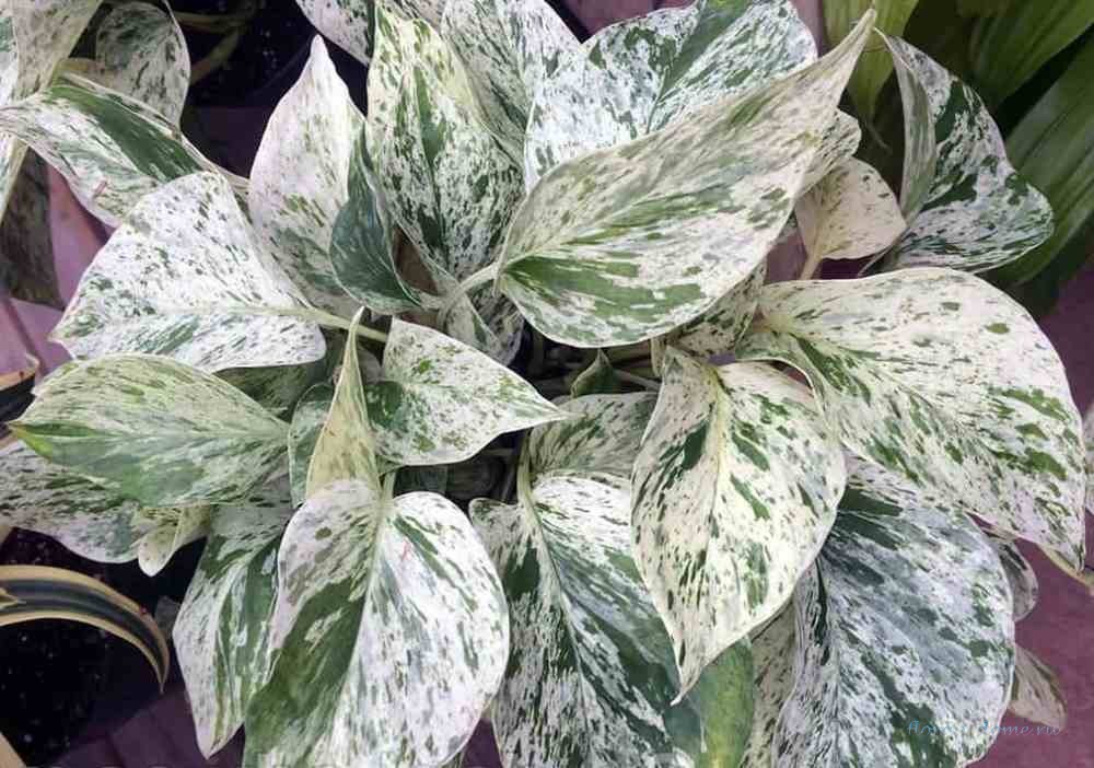 Данный вид является одним из самых маленьких представителей Эпипремнума. Ему тоже характерны листья, 8х5 см, от которых и пошло название вида, т.к. их цветовой окрас наглядно напоминает цвета жемчуга и нефрита.