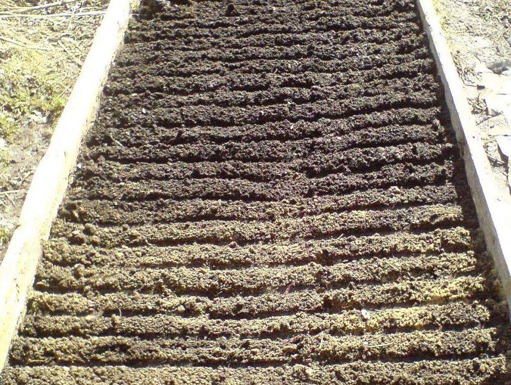 - посадочный материал распределяют равномерно по неглубоким канавкам;